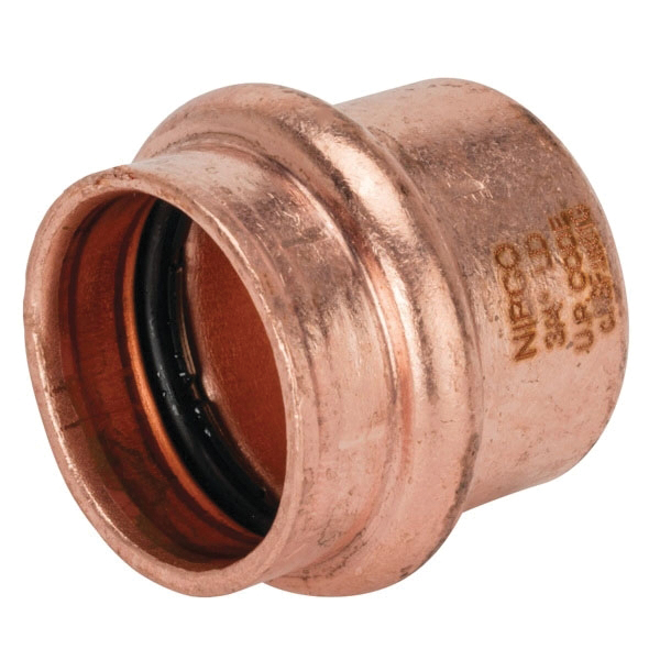 The Nibco® Press System® copper cap features an inboard bead and EPDM o-ring. Simply applying pressure from a pressing tool tightens the o-ring onto the tube, ensuring a clean, watertight seal in seconds with no flame, solder or flux. The cap has a press connection. The fitting is used to fit over the end of pipe to seal the end. Nibco® press fittings are the fastest, easiest way to join copper tubing.