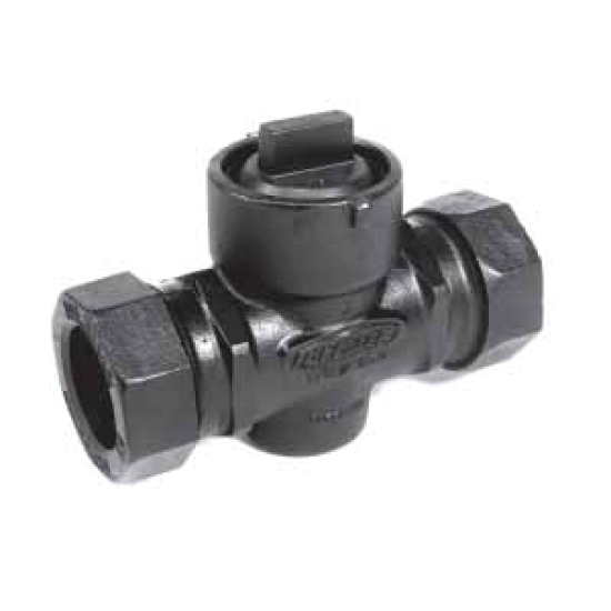 Dresser Meter/Curb Valve With Universal Style 90 Ends, Meter/Curb Valve With Universal Style 90 Ends, Series/Model: Style 175, 2 IN Nominal, Connection Type: Compression, 175 PSI, Cast Iron Body, Elastomer Seal, Material Standard: Body And Bonnet: ASTM A126 Class B, Plugs: ASTM A126 Class B, Elastomer Seal Inserts: C1018, Spring: ASTM A229, Grip Ring: ASTM B733, Finish/Color: Gray