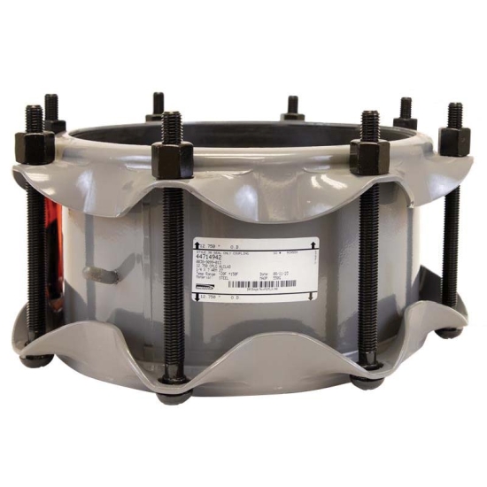 Dresser Coupling, Type: Style 38, Item Name: Coupling, 12 IN Nominal, Compression Connection, Carbon Steel, Finish/Color: Aluminum Clad, 12-3/4 IN Outside Diameter, 9-1/2 IN Length, 558 PSI Maximum Pressure, 212 DEG F, Additional Specifications: With Armored Grade 27 Gaskets, 1/4 IN Middle Ring Thickness, 7 IN Middle Ring Length