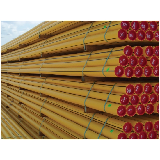 Performance Pipe Blackstripe® Gas Pipe, Blackstripe®, Gas Pipe, Series/Model: Series 8400, 1/2 IN Nominal, 500 FT Length, 5/8 IN Outside Diameter, SDR 7, 0.09 IN Wall Thickness, HDPE, Material Standard: ASTM D2513, PE4710, Finish/Color: Yellow, 125 PSI Maximum Pressure, 73 - 140 DEG F, Industry Standards: CAN/CSA B137.4, UPC Listed