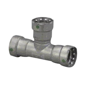 MegaPress® Reducing Tee, Series/Model: Model 4818, Tube Size: 3/4 X 3/4 X 1/2 IN, Connection Type: Press, Material: Carbon Steel, Maximum Pressure: 200 PSI, Temperature Rating: 0 - 250 DEG F, Industry Standards: UL 213 Listed, FM Class 1920 Approved, IAPMO PS117 Certified, ICC LC1002 Certified, DNV Certification, CRN #OA14541.6, ABS Listed, GL Listed, LR Certified, Compliant With UPC, UMC, IPC, IMC, IFGC, ASME B31, NFPA 13, 13D And 13R, 31, 54 And 58, CSA B149.1 Certified, Other Physical Dimension: 2.26 IN Center To End Run, 2.14 IN Center To End Outlet