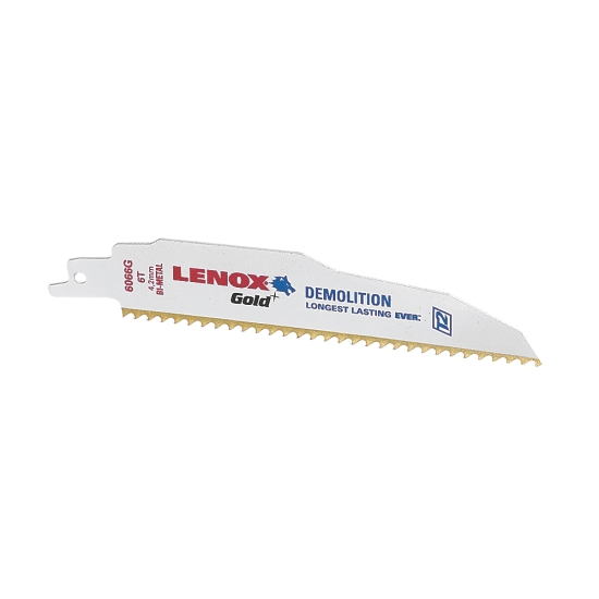 LENOX® Gold® Reciprocating Saw Blade, Additional Specifications: Packaging: 5/Pack, Finish/Color: Titanium Coated, Reciprocating Saw Blade, 12 IN Length, Bi-Metal, Gold®, 6, 0.05 IN Thickness, 3/4 IN Width